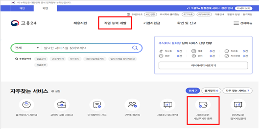 1. 고용24 홈페이지 - 기업회원 로그인