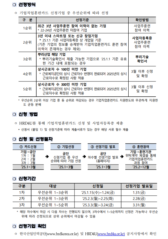 [한국산업인력공단] 2025년 기업직업훈련카드 참여기업 모집 공고